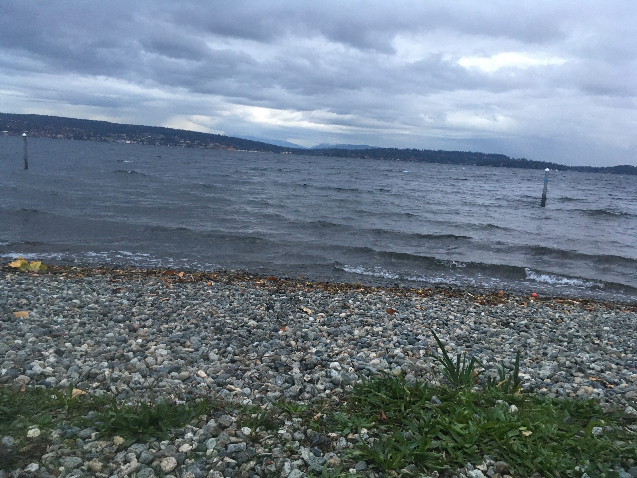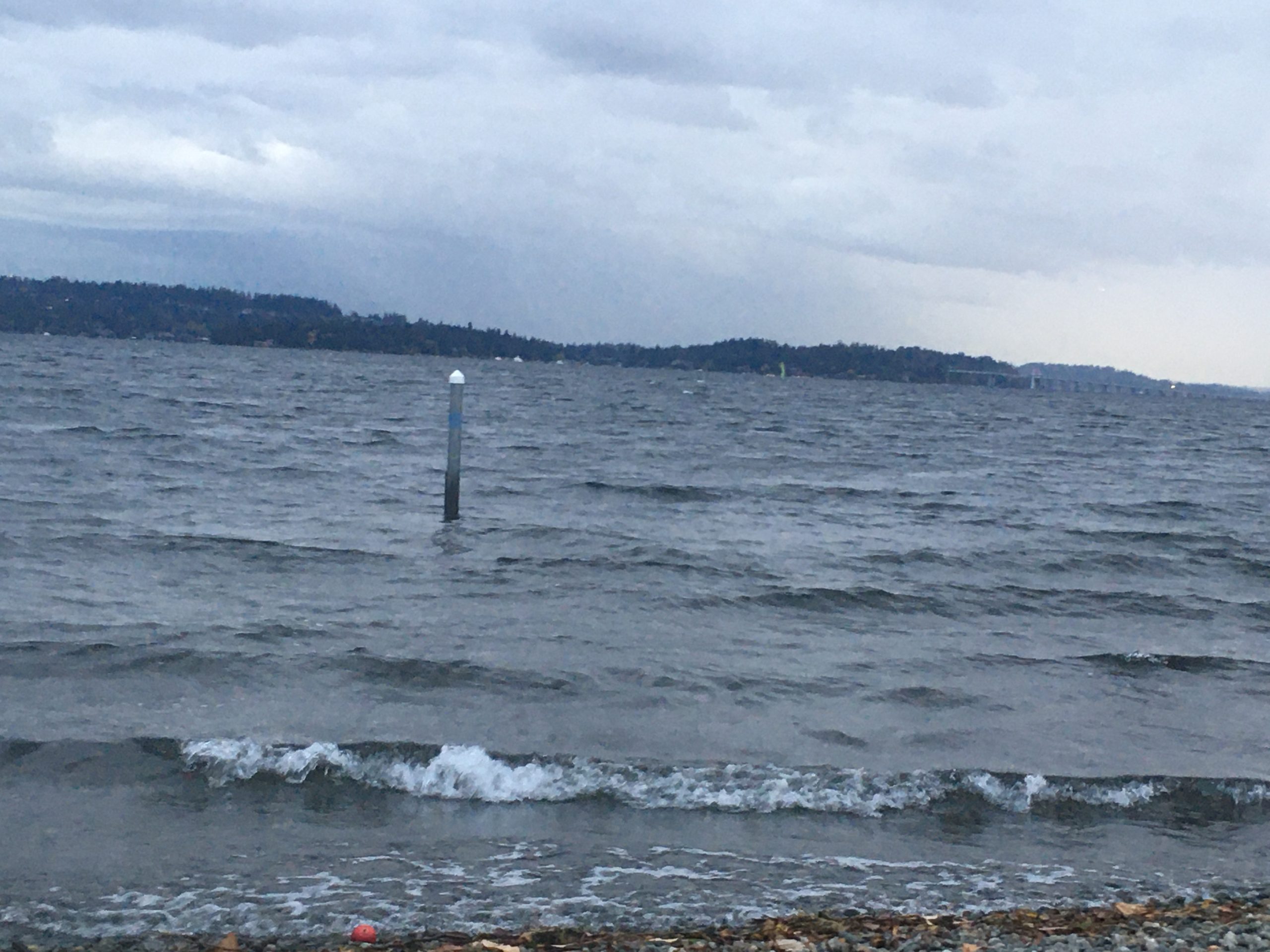 I was excited to finally get back in the water, AND two women from the plunge group said they would join me. One women I have met a few times, the other I was meeting for the first time. I was so happy to have the company. It is weird to swim with others because you can’t really take the time to get to know each other. It’s so cold out, and we all had to move quickly to transition from clothed to wetsuited, to water, then back to clothed. No time to chat much. Then everyone has a different approach to the water experience. Some seem to be dippers or soakers. Some are hardcore swimmers. Some are slow and steady. Going swimming with someone you don’t know or have connected with via a Facebook swim group page or Nextdoor is kind of odd. You meet. But once you go from standing chest-high in the cold water and taking the pause where you think, “this is insane,” to plunging into the water…..you go in your direction. They go in theirs. Then you meet back on the beach in 10 or 30 minutes, both of you making a mad dash to get wet gear off and dry clothes on. Anyway….back to the water. (And please know that the photos and videos always look MUCH lighter than the reality of the experience. It was all dark waves today. Grey skies, and by the time I was almost finished, rain.)