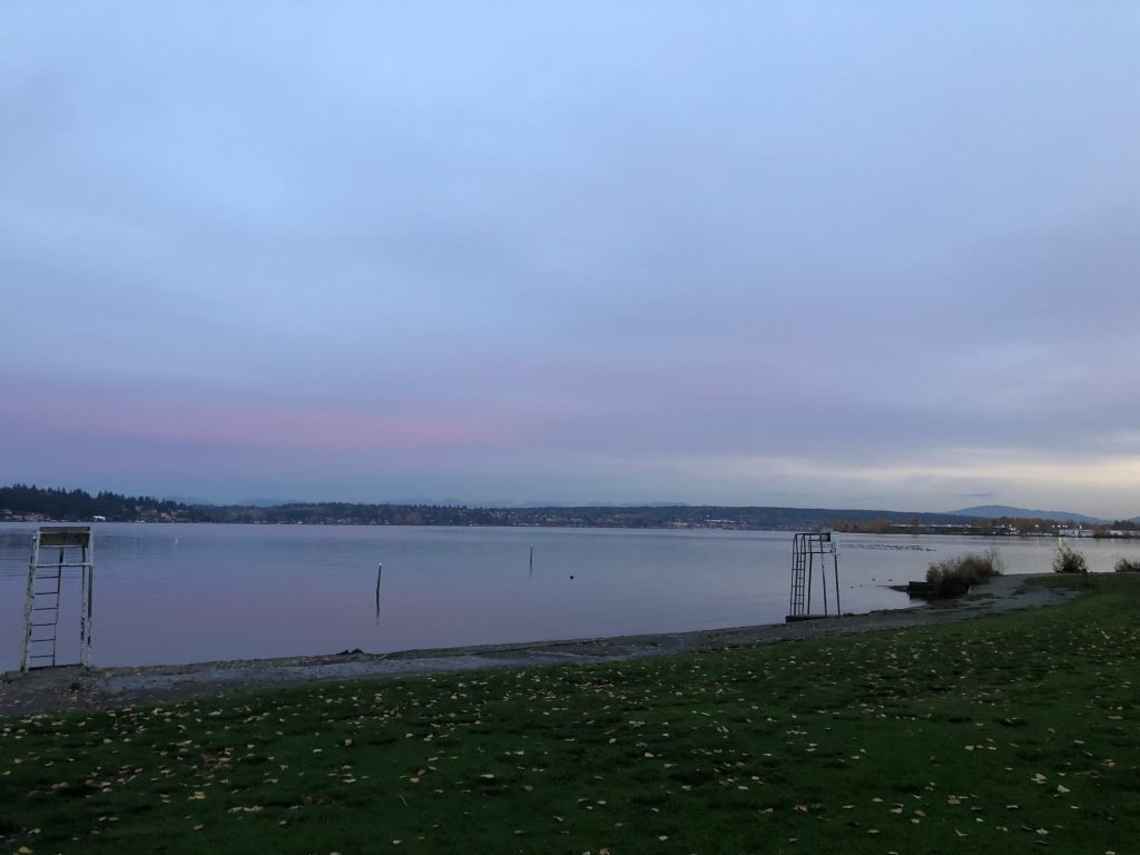 The water was nice and flat. 45 degrees F. Maybe 45 F air. I was the only one in the lake as far as I could see. At a bit after 4pm, there was enough daylight left since sunset is usually around 4:30pm. M took me to the lake and was my spotter. I like it when she takes me because she makes sure I don’t lose my gear after my swim, she takes the photos and videos, and she drives. All I have to do is swim. And free myself from my wetsuit after, which is really hard. The rubber is so tight around my ankles, and I have huge feet. Anyway, I’m so grateful for M, my in-home care aide, because she helps me do the things I need to do to feel better.