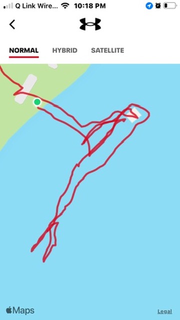 There were a few paddle boarders nearby, but I still had a nice wide area for swimming. I swam out for a little bit, then I isolated my legs with some flutter kicking with my arms at my sides. Then I turned around and swam back to the swim area. I went under the rope and swam across the swim area and back. I swam back to the dock and stopped at three sides, using the pull-up bars to do 10 pull-ups on each bar. Note to self: do this every time. I am a bit horrified by my old lady arms. Not horrified enough to do anything about it, but water pull-ups are the least I should be doing.