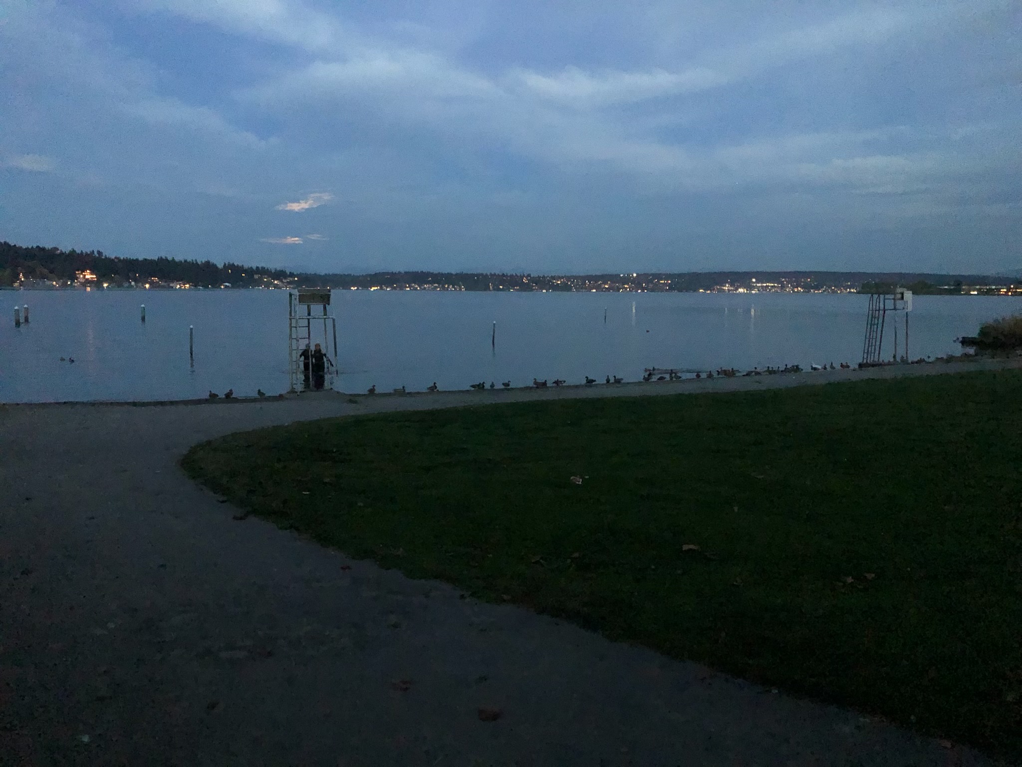 Today at the lake it was dark, and the water was flat. My caretaker, M, took me to the beach with just 15 minute left until sundown. I love swimming at night; it’s just not ideal to be in the park alone once it gets dark. But we were two, and we felt safe.