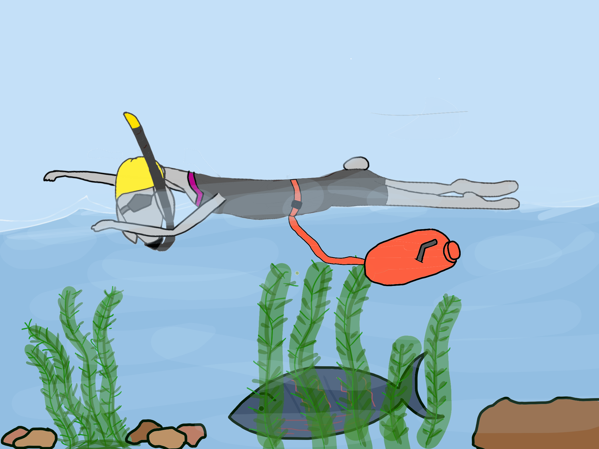 I swim with a floatable knife now because I’m really scared of the tall seaweed in the deep water. I saw a kid get tangled in it and DIE when I was a kid (different lake, in WI), so it freaks me out. And I’m curious. So I mostly swim back and forth parallel to the shore, in water about neck deep. But sometimes I just head straight out there. It’s darker, the seaweed looks more menacing, and it’s where the HUGE fish swim. I saw one the other day. Scary. It is kind of silly that it scares me, but that’s why I force myself to the deeper water every so often.