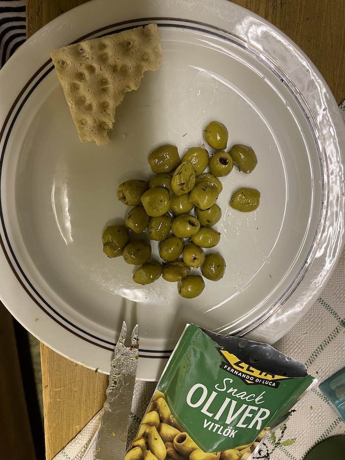 Next, we went to her son’s house and had  a “girl dinner” of apple slices, cashews, olives, and tea. It felt like a feast. Her son’s house is a lovely old farmhouse, as is hers, the house Nextdoor. I love the simple style, the wooden floors, the cows in the field nextdoor. The countryside here is mostly farmland, dotted with areas of deciduous forest. And there are rolling hills, which give the landscape a more intriguing energy than the flat, flat farmland in Skåne.