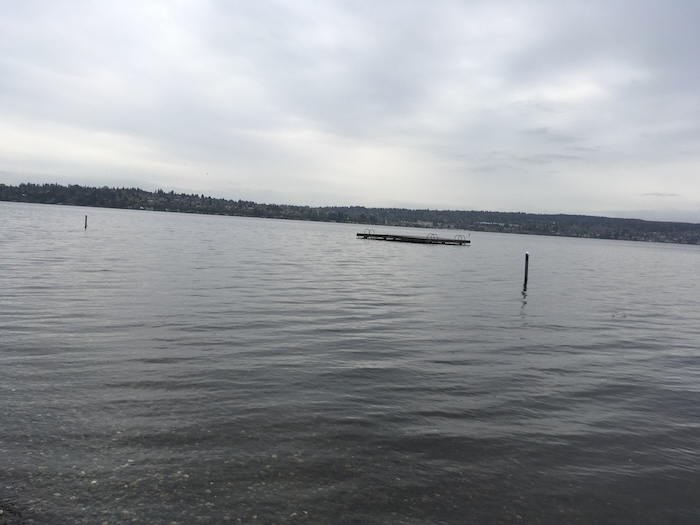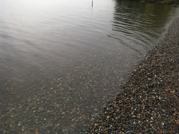 Today at the lake it was drizzly and grey. The water was glassy. It hardly made a sound when it touched the beach.