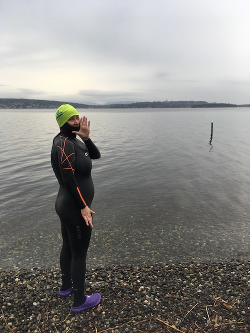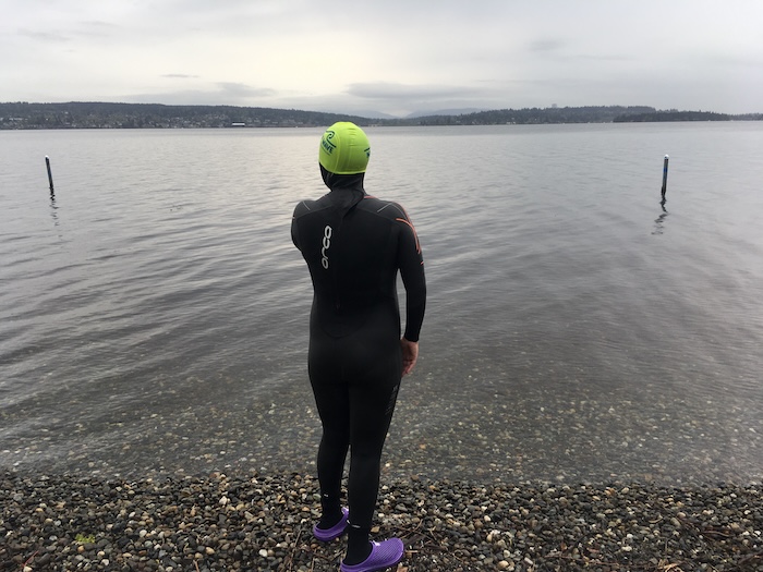 I was happy to be in my transition wetsuit even though it is quite challenging to get on and off. I love wearing it, though, because it’s so stretchy and thin that I feel free in the water. I even tried to swim crawl today several times.