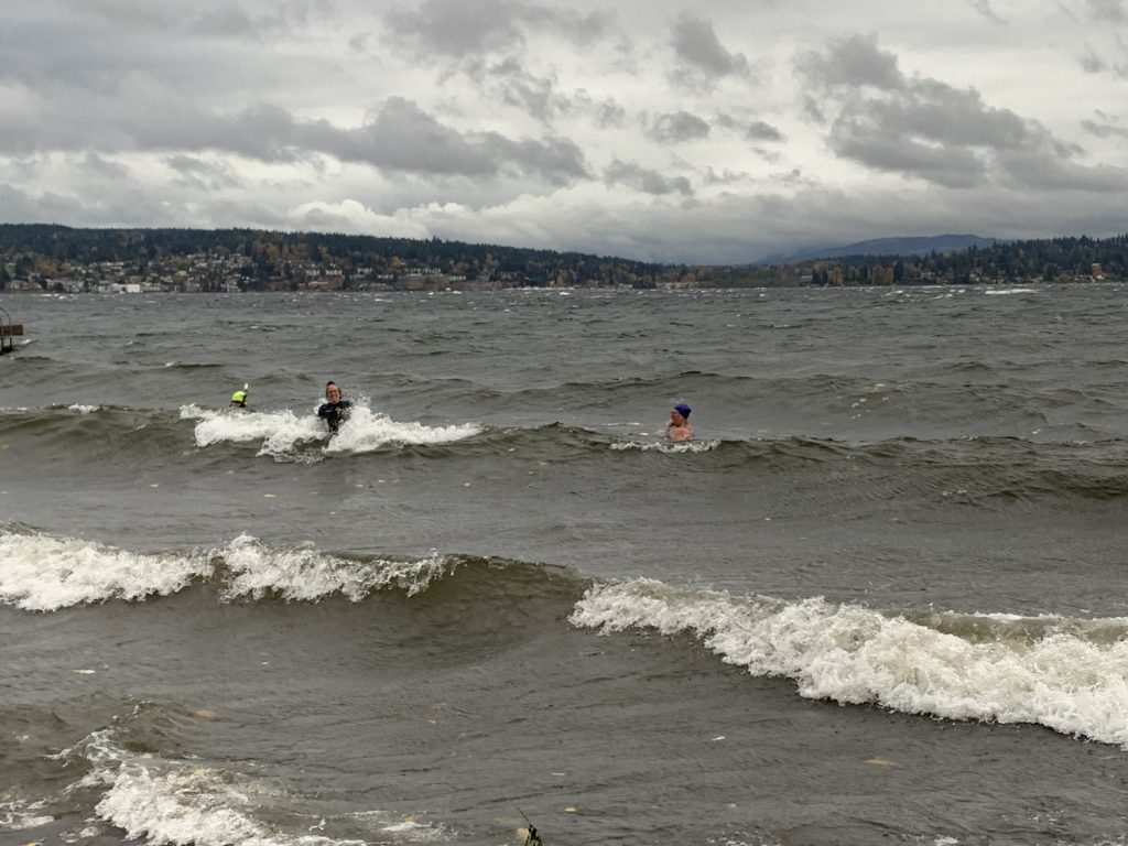 Today I was a total sea witch. I was a badass. I was fearless. I got my butt kicked by the waves and exposed by the wind. I swallowed water but didn’t drown. My snorkel didn’t work, but I dove into the waves, over the waves and across the waves. The whipping sound of the wind and water just made it more exciting. I would have stayed longer, but K and K got out. Better to have swim buddies who know when they’ve had enough. Damn. That was one fine adventure.