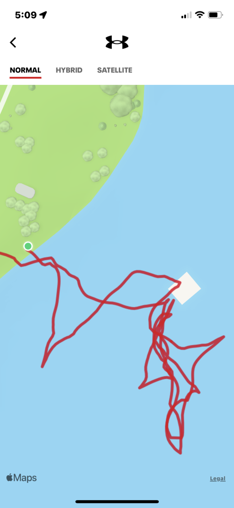 Anyway, I was plodding along, feeling crummy. I couldn’t really space out like usual. On hard days I really have to focus so I don’t drown. I was fine, but just had to keep me head on. I was pretty happy when I heard my alarm go off. I swam to the dock and out and back again before heading in.